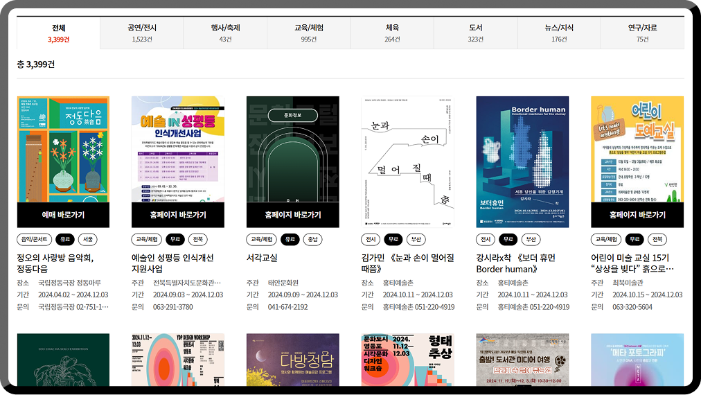 국민 누구나 쉽고 편리하게 다양한 공공문화정보를 누릴 수 있는 원스톱 공공문화정보 통합안내 서비스